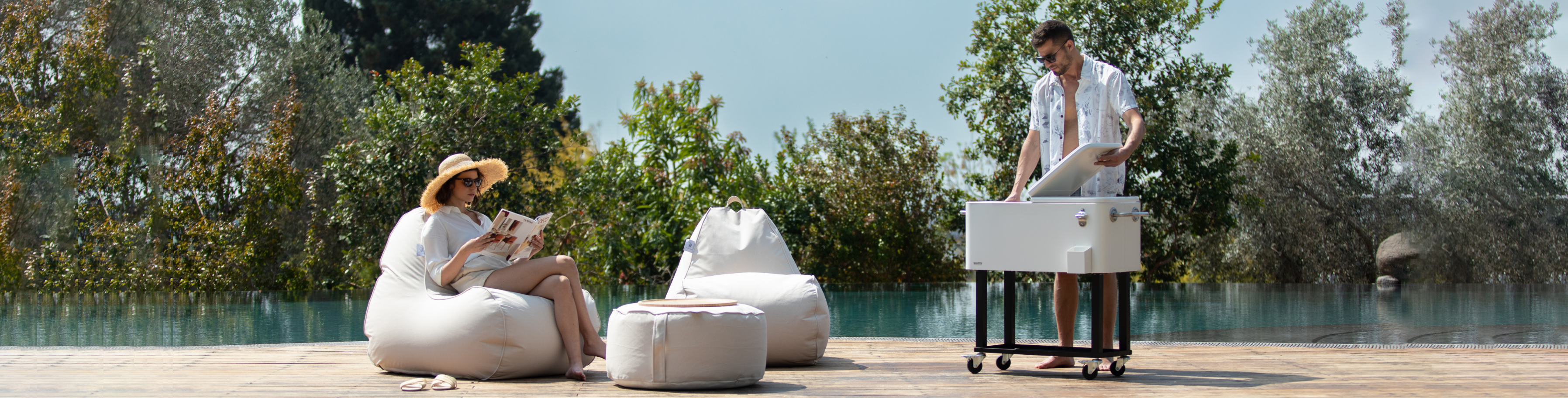 מוצרים ייחודיים המיועדים לתנאי חוץ אשר יסייעו לכם לשמור על המשקה שלכם קר ומגשי במבוק אשר הופכים את פוף ההדום לשולחן.