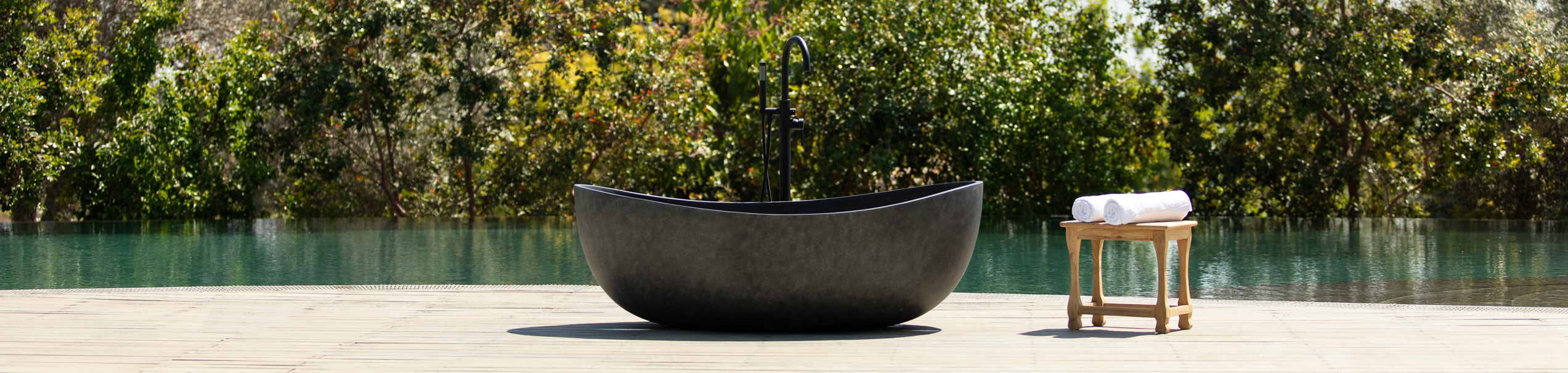 אמבט חוץ INFINITY עשויה תרכובת בטון, בעיצוב מודרני ואלגנטי וב-3 צבעים מתאים לכל מרפסת, חצר וגם לחדרי אמבט.