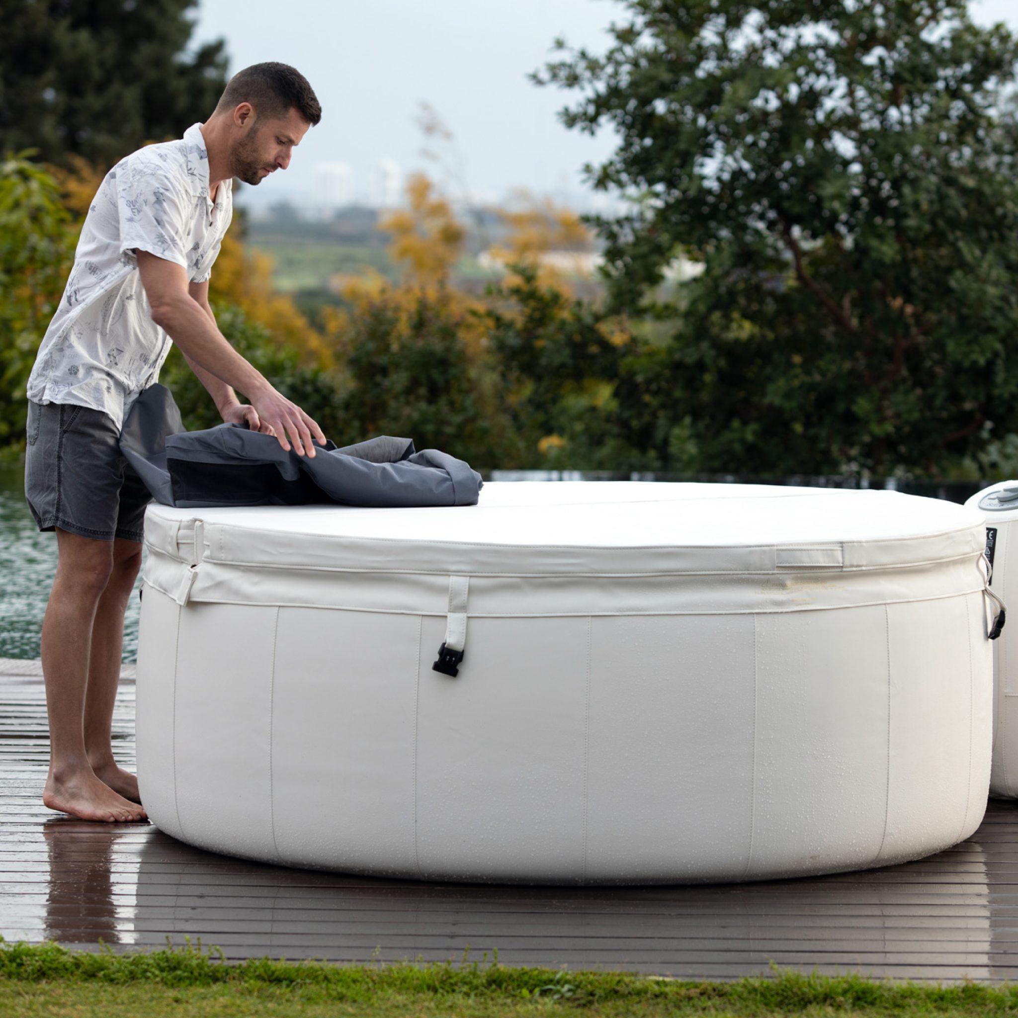 מומלץ לנקות את הכיסוי מאבק או לכלוכים בעודו על הג'קוזי באמצעות מטלית לחה/רטובה.