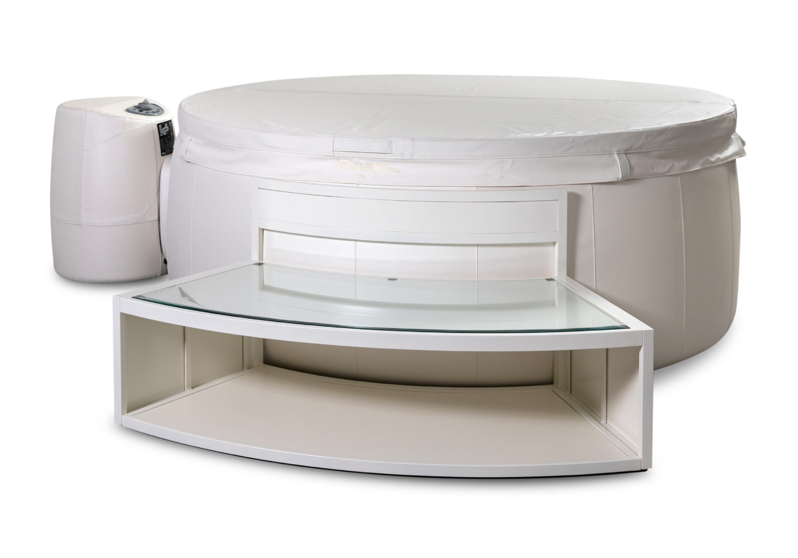שדרג את חוויית הג'קוזי שלך עם סקשן אלומיניום הכולל שולחן זכוכית אלגנטי, מושלם להנחת כיבוד וכוסות בסטייל.